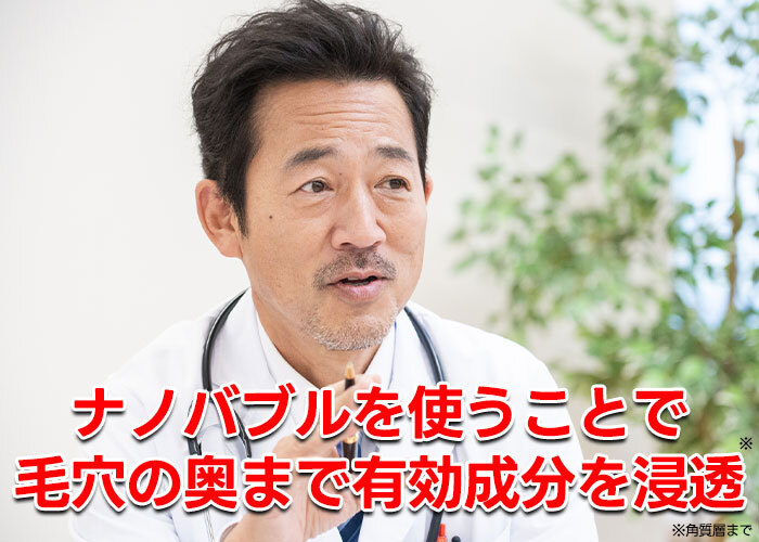 年齢とともにトップのボリュームが減ってきているのが悩みでした。ナノバブルのおかげで液垂れもしないし、簡単なので続けられています。